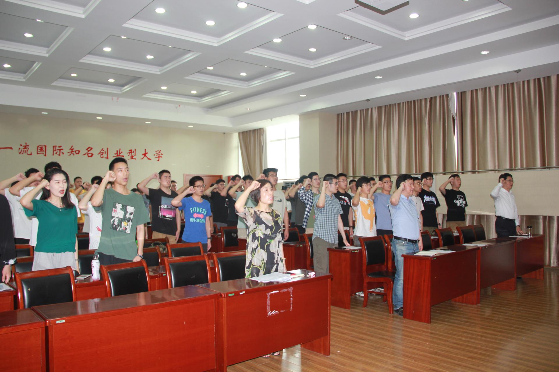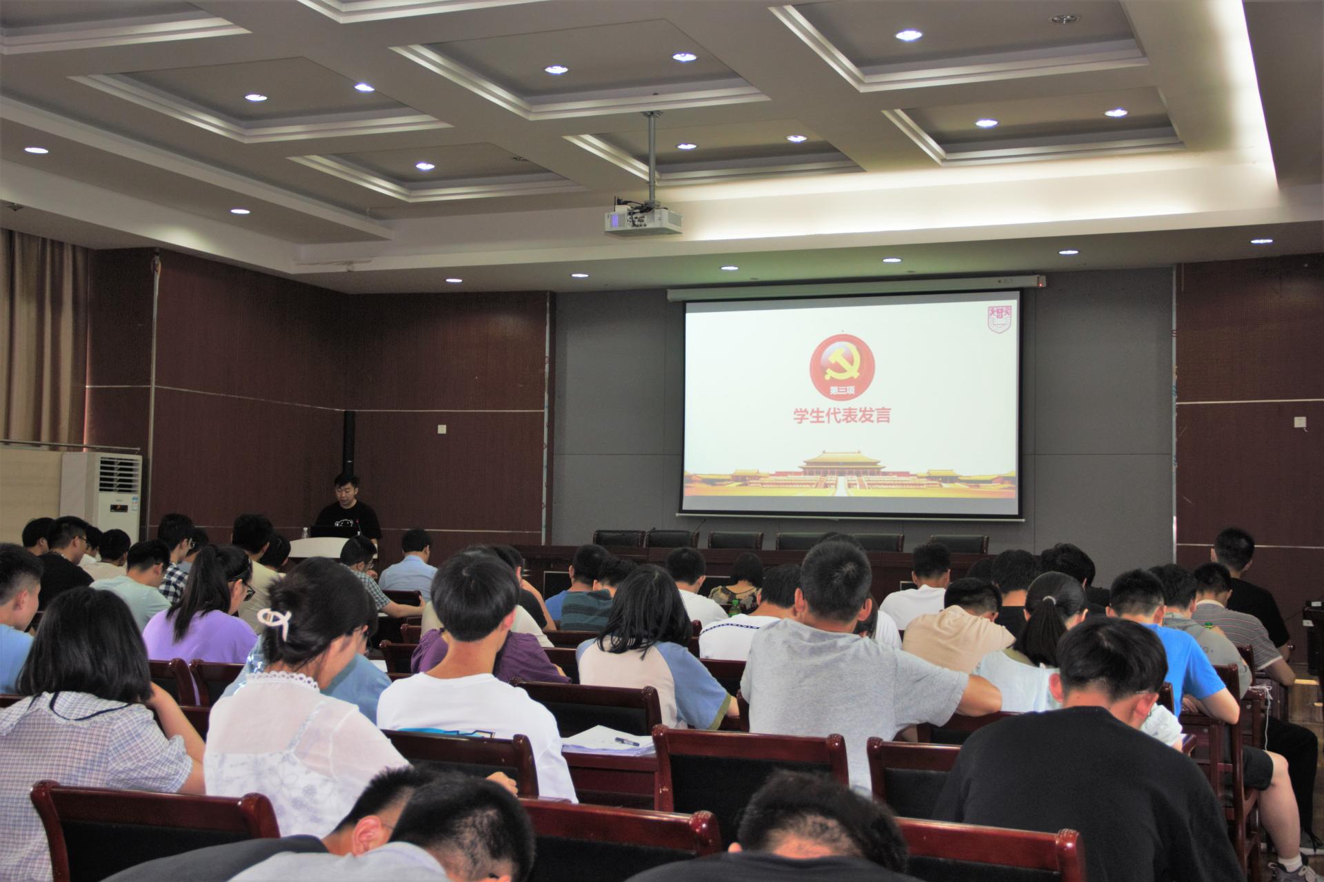 6月8日中午,太阳成城集团tyc234cc古天乐在崇德楼E楼四楼报告厅召开“初心使命牢记心,文明离校我先行”毕业班党员大会。公司党委书记蒋远喜、党委副书记付昌义、党委组织员黄丹枫出席会议,公司123名即将离校的毕业生党员参加了会议。