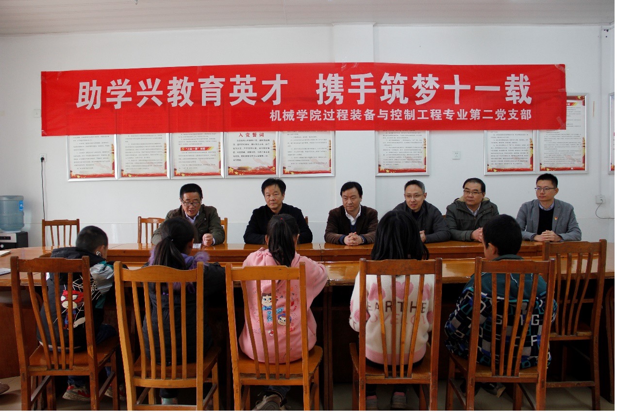 为弘扬扶贫济困、乐善好施的中华优良传统美德,11月17日下午,太阳成城集团tyc234cc古天乐过装专业第二党支部、教师第一党支部、研究生第八党支部的党员们在公司党委副书记付昌义以及教师支部王海峰、耿鲁阳、聂政威、辅导员张旭老师的带领下,赴安徽和县金城小学开展以“助学兴教育英才,携手筑梦十一载”为主题的爱心助学党日活动。