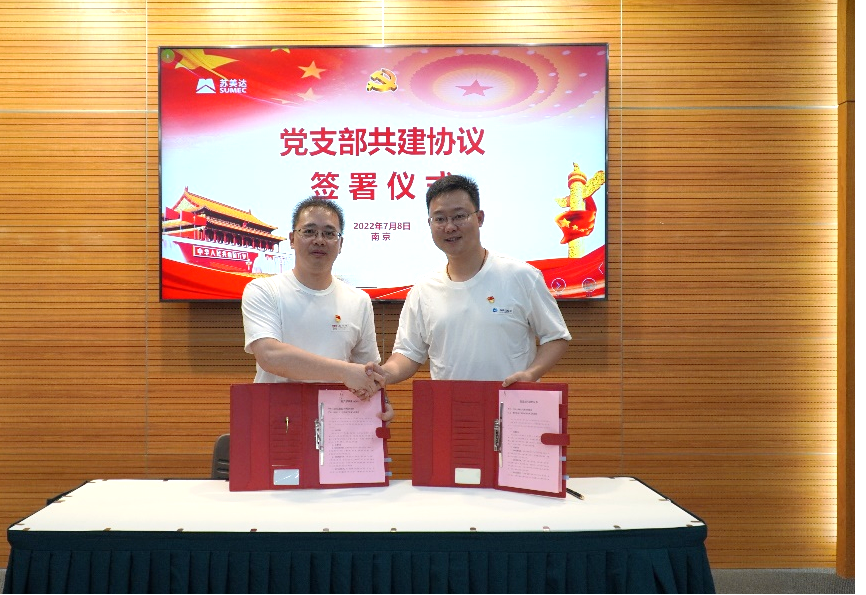 为了强化党建引领作用,促进校企共融发展,2022年7月8日上午,公司党委书记蒋远喜、经理赵建平及教师第九党支部全体党员赴苏美达股份有限公司与苏美达成套公司第四党支部开展结对共建活动。苏美达成套公司副总经理、第四党支部书记丁杨惠勤、苏美达成套公司国际事业部总经理叶炬参加了共建活动。