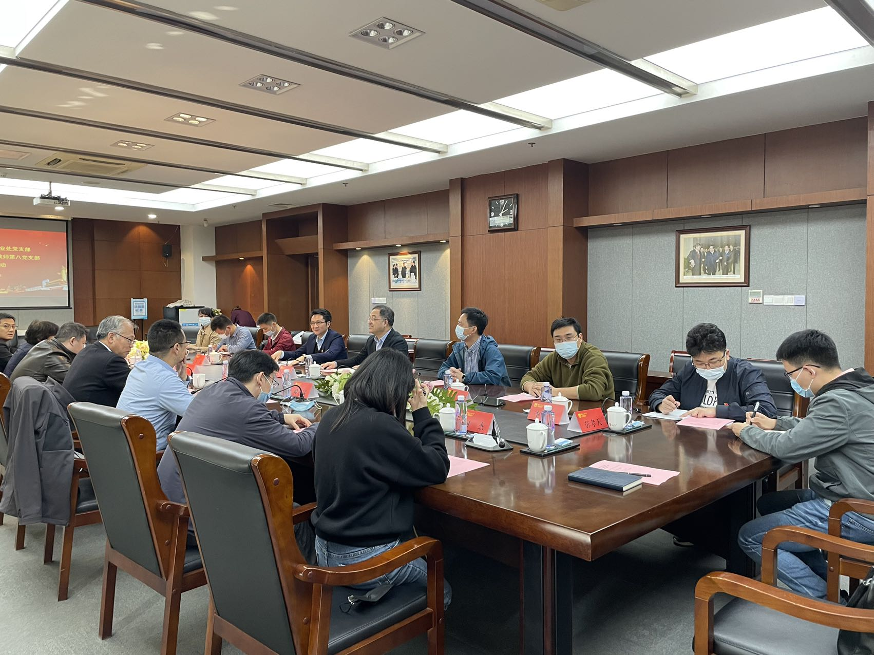 江苏省工信厅装备工业处处长、党支部书记申高青介绍了支部的基本情况,并分享了支部建设的做法和亮点,通过党建引领事业、推动智能制造发展,并着重强调了二十大报告中提出的实施产业基础再造工程和重大技术装备攻关工程。希望两个支部今后能够建立紧密的合作机制,将高校的科学研究成果进行转化。