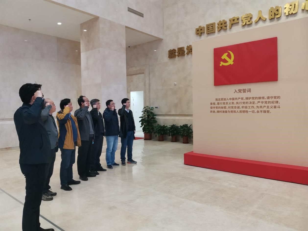 渡江胜利纪念馆由胜利纪念广场、主展馆等部分组成。纪念广场上矗立着大型“千帆竞渡”群雕,象征着1949年4月23日南京解放;主展馆外饰采用红色石材,象征着红色革命精神永恒,展馆远看像一艘木船,寓意为“驶向胜利之船”。大家先后参观了基本陈列“天翻地覆慨而慷——渡江战役胜利暨南京解放展”、“人间正道是沧桑——中国共产党南京历史展”,并重温入党誓词宣誓。展馆史料丰富详实,全面系统地再现了那段惊天动地、波澜壮阔的革命岁月,大家深切地感悟到渡江战役的伟大胜利离不开党的坚强领导、充分体现了伟大建党精神的丰富内涵。