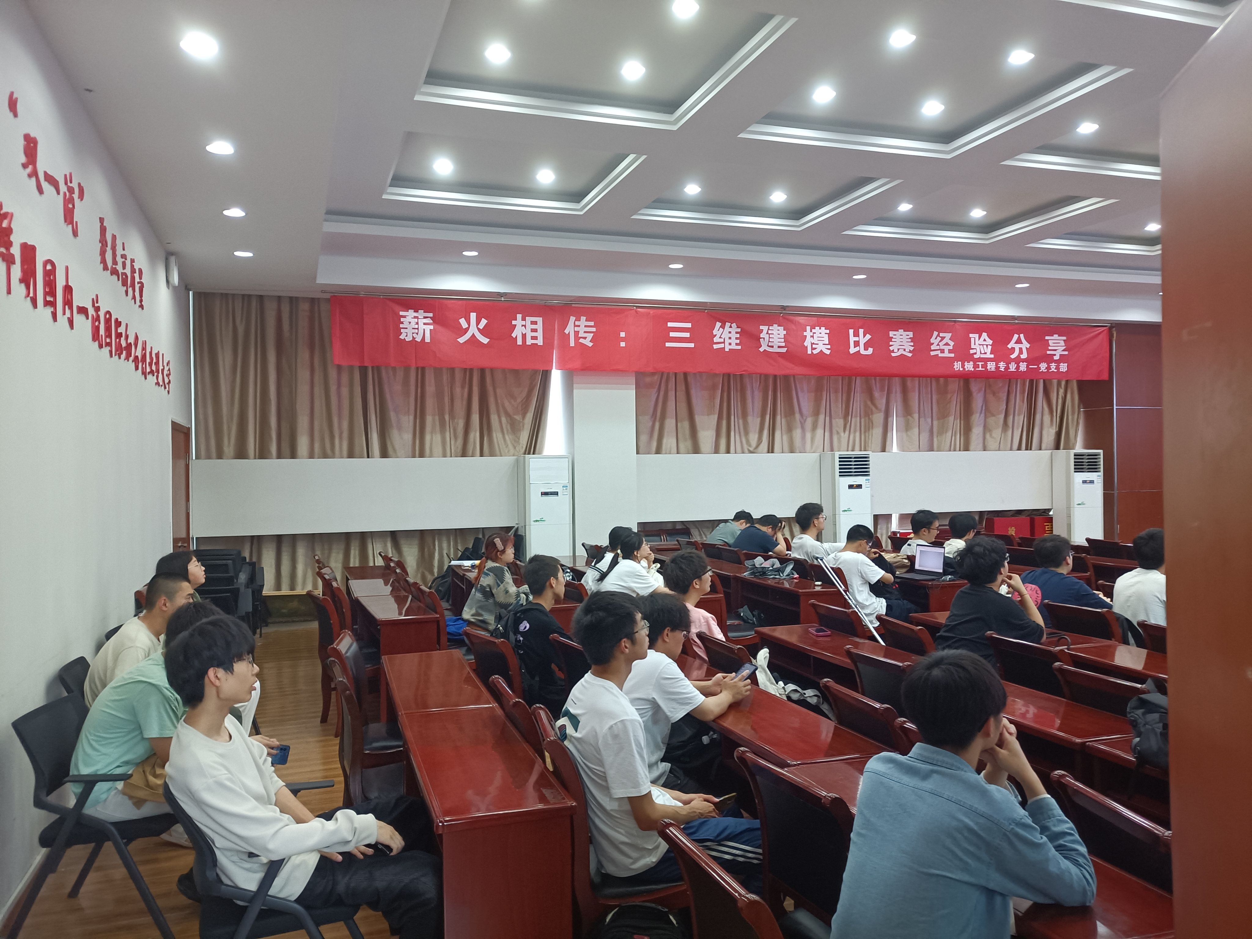 为进一步加强党支部与班级同学之间的交流,5月11日,太阳成城集团tyc234cc古天乐机械工程专业第一党支部在崇德楼E栋四楼报告厅举办了“薪火相传-三维建模比赛经验分享”主题党日活动。支部全体党员、支部覆盖班级同学以及准备参加建模比赛的同学参与了本次活动。