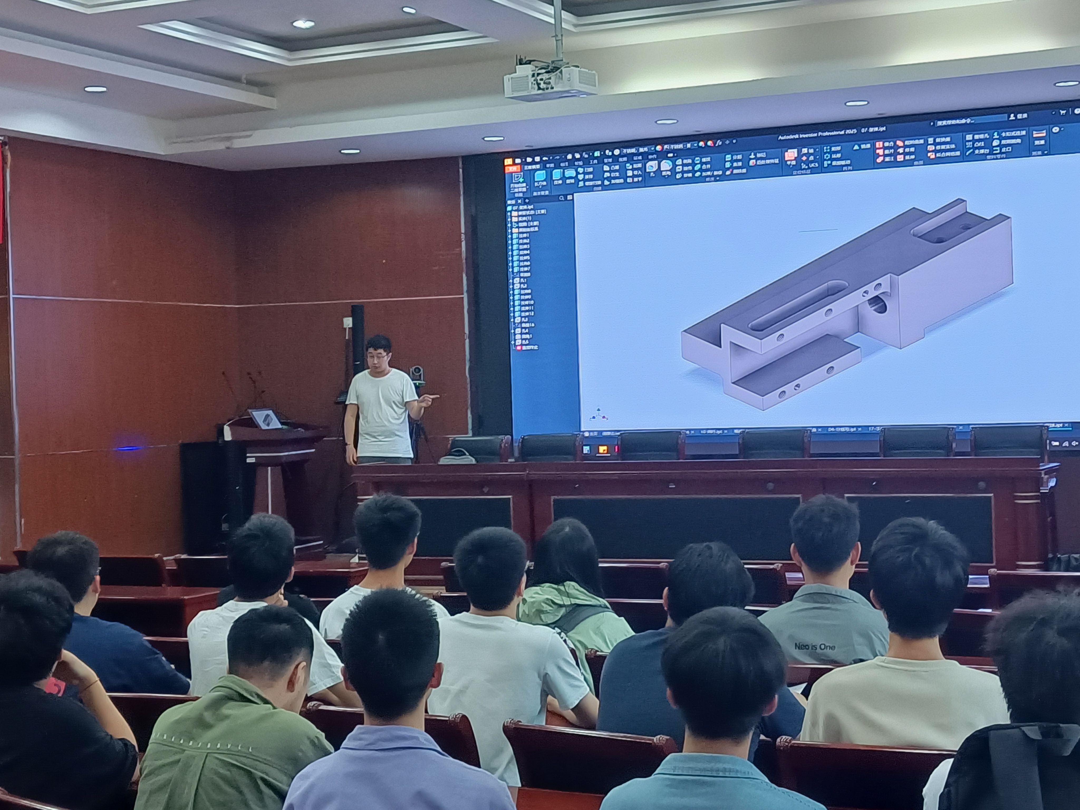 本次活动邀请了在全国老员工先进成图技术与产品信息建模创新大赛中获得个人一等奖的张嘉骏同学主讲,张嘉骏同学用风趣幽默的语言讲述了个人在建模过程中的经验技巧、遇到的挑战以及解决办法,并演示了一些操作技巧和快捷方式。