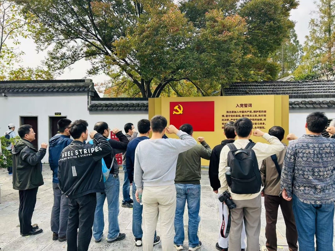 上午,全体党员来到濮塘镇江东第一党支部旧址,在讲解员的带领下,党员们认真聆听了江东第一党支部成立的历史背景和发展历程,了解了支部如何在极其艰难的革命岁月中,带领人民群众开展抗日救亡斗争的感人事迹,深刻体会到了革命先烈矢志不渝的爱国情怀和对党的忠诚。下午,全体党员前往濮塘新四军抗战指挥部纪念馆参观学习。在纪念馆前,党支部书记带领全体党员面向党旗庄严宣誓,重温入党誓词,铿锵有力的誓词叩问着党员们入党时的初心,进一步激发了大家的责任感和使命感。