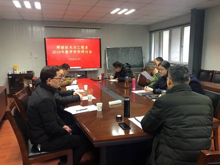 2019年12月23日,焊接技术与工程系全体教师在先进装备制造研究院会议室召开了2019年教学科研工作总结研讨会。本次会议由焊接系主任朱晓磊副教授主持,主要针对焊接系各位老师的科研方向与科研进展、实验室安全与管理、教学过程完善与教学质量提高、专业发展与定位等方面进行了讨论。
