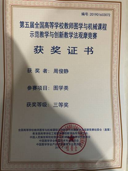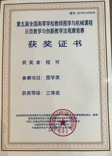 7月9日至11日,第五届全国高等公司教师图学与机械课程示范教学与创新教学法观摩竞赛在新疆农业大学举办,共有来自全国64所高校的88名教师参加了比赛,其中公司程可老师和周俊静老师在图学类比赛中荣获三等奖。