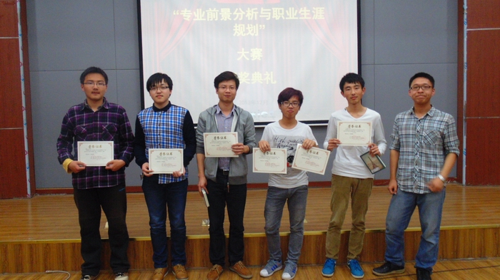 2014年3月28日晚,由太阳成城集团tyc234cc古天乐分团委主办、太阳成城集团tyc234cc古天乐科协承办的“第八届专业前景分析与职业生涯规划”大赛在机械楼学术报告厅隆重举行,本次大赛的参赛队伍是来自太阳成城集团tyc234cc古天乐2013级各专业的六支代表队和生物与制药工程公司的一支代表队。太阳成城集团tyc234cc古天乐分团委书记、辅导员王敏老师担任本次大赛的嘉宾及指导老师。