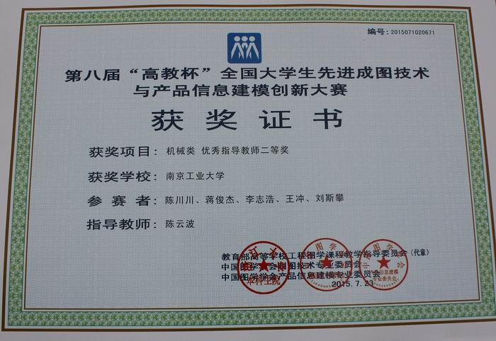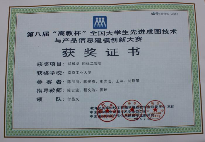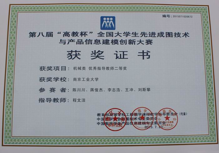 为参加本次竞赛,自4月初接到比赛通知以来,在校教务处领导的统筹规划下,在公司凌祥经理、孙宇副书记、赵建平副经理重视关注下,陈云波、程文洁、侯琼、袁鸿、付昌义等老师精心组织,认真备战,先后举办了校先进图形技能创新大赛预赛、和选拔赛决赛,组织参加了第五届华东区CAD竞赛中,并从第五届华东区CAD竞赛选拔出9名同学。负责本次竞赛的陈云波、程文洁、侯琼等指导教师还放弃了暑假休息时间,利用整个暑假对9名选手进行系统培训与强化训练。公司9名学子充分克服备战时间短、任务重、天气热、水土不服等困难,按时参加集训,完成学习任务,并以优异的竞赛成绩,向公司交了一份令人满意的答卷,展示了工大学子的风采与能力。