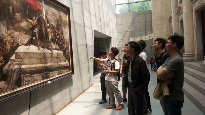 接着,全体成员在辅导员王敏和支部书记马越的带领下参观了渡江胜利纪念馆。临近馆区,映入眼帘的是 “渡江战役总前委” 雕塑和主馆区的“胜利之船”,大家走近驻足凝望,满怀期待地迎接一场跨越世纪的“穿越”。纪念馆主体分为六个展厅,大家依次参观了序厅、“风雨苍黄”“天翻地覆”“人间正道”“胜利之都”和纪念厅。从描绘渡江战役的浮雕布景到以《七律•人民解放军占领南京》为代表的伟人诗篇,从描绘风起云涌年代的油画到现代声光电技术结合的视频影像资料,从革命风暴席卷南京城时的文电、衣着、武器等战时物件到讲解员详细的解说,生动展现了百万雄师过大江的壮阔画卷。一幕幕惊心动魄的战斗场景,将同学们带回了艰苦卓绝的峥嵘岁月,一路上大家针对不同展区的历史事件展开了探讨,惊叹之声,敬佩之心油然而生。通过参观,全体入党积极分子感受到了革命先辈们为了解放全中国,百折不挠、奋不顾身的牺牲精神,领略到了我们党将领们运筹帷幄、指挥若定的智慧风范。