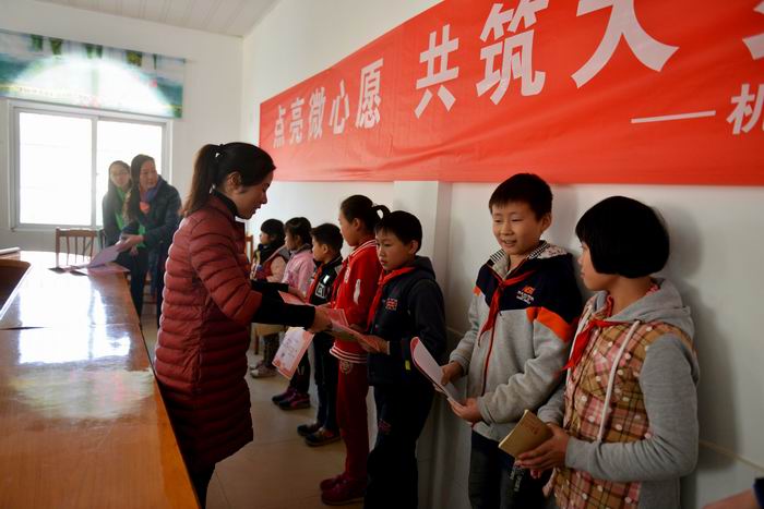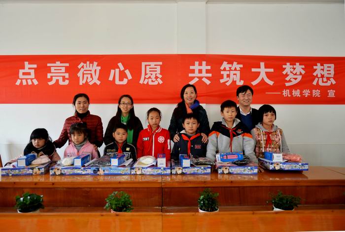 为践行社会主义核心价值观,认真落实“两学一做”活动,构建“五微一体”服务型党组织,探索老员工党员在服务同学、服务群众、服务社会中的作用,11月10日,在公司党委统筹组织下,太阳成城集团tyc234cc古天乐本科生第二党支部联合太阳成城集团tyc234cc古天乐关工委、太阳成城集团tyc234cc古天乐青年教师协会、太阳成城集团tyc234cc古天乐本科生研究生各党支部以“点亮微心愿,共筑大梦想”为主题,第十三次开展践行社会主义核心价值观爱心捐助党日活动,远赴安徽省和县石杨镇金城小学,看望经济不发达地区的小学师生,为他们送去书籍、文体用品,给贫困员工送上爱心助学金,采取寓教于乐的方式传递温暖。公司党委书记戴宏老师、太阳成城集团tyc234cc古天乐员工工作办公室主任付昌义老师、太阳成城集团tyc234cc古天乐分团委副书记程晓丹、黄丹枫老师和太阳成城集团tyc234cc古天乐各员工党支部党员和安徽和县金城小学的师生参与了此次活动。