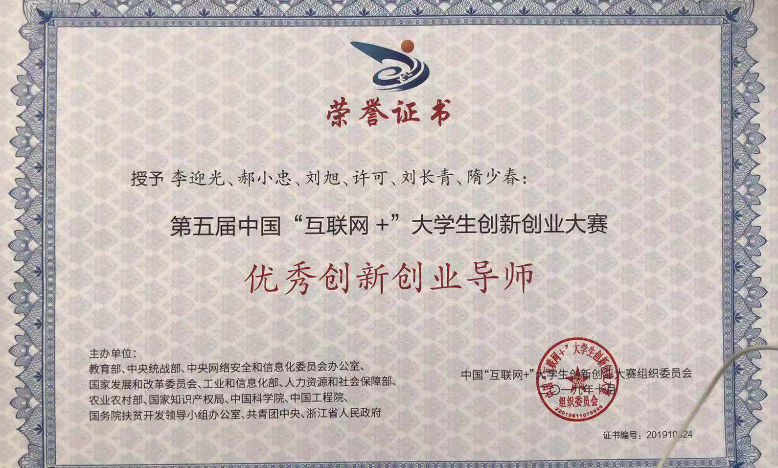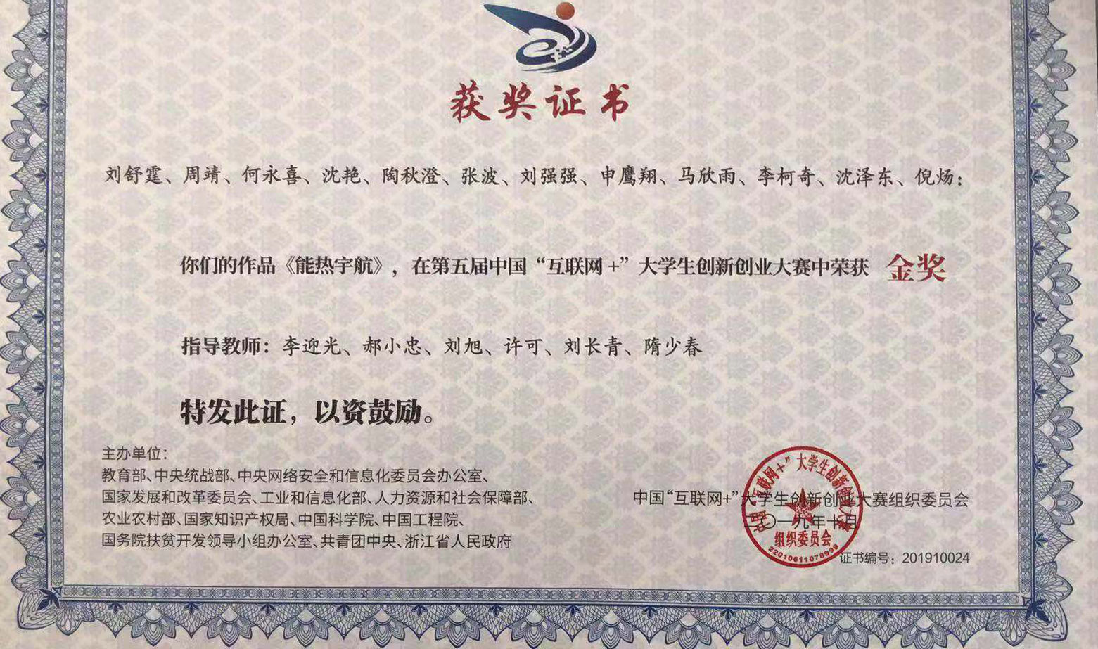 在近期结束的第五届中国“互联网+”老员工创新创业大赛中,由公司刘旭老师指导,沈泽东同学参与的项目《能热宇航》荣获第五届中国“互联网+”老员工创新创业大赛金奖,刘旭老师荣获第五届中国“互联网+”老员工创新创业大赛优秀创新创业导师。