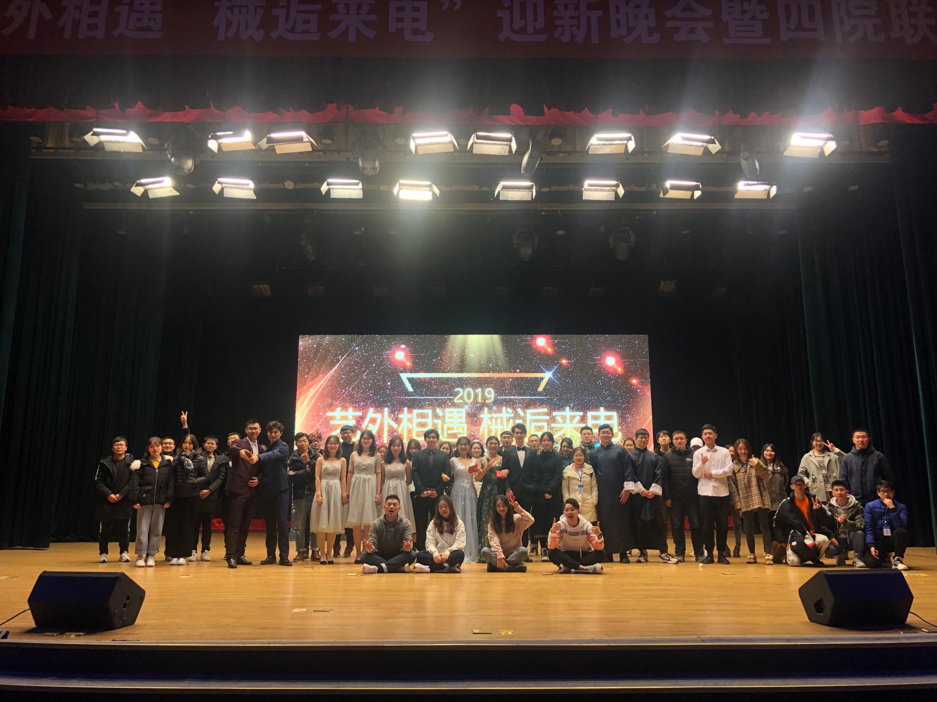 12月23日晚,太阳成城集团tyc234cc古天乐、电气工程与控制科学公司、艺术设计公司、外国语言文学公司四院,在江浦校区大礼堂会联合举办了“艺外相遇,械逅来电”四院联谊迎新晚会。党委研工部部长彭亚辉,四个公司党委副书记、研究生辅导员和四个公司近600名研究生欢聚一堂,共享此次晚会。
