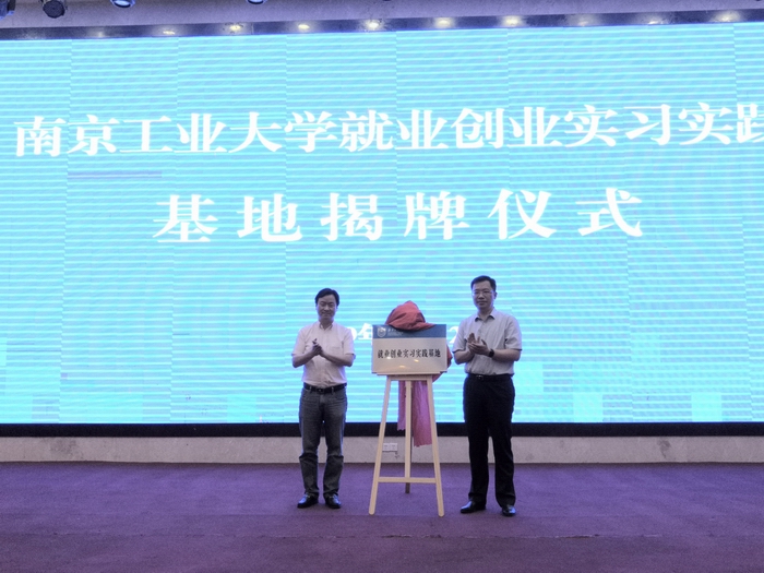 王星部长在致辞中介绍了金湖从产业特色、创新能力、人才环境等三个方面基本情况, 随后,吴蔚处长对淮安市社会发展和人才科技工作情况做了简要介绍。活动现场,王星部长和付昌义副书记共同为“太阳成城集团tyc234cc古天乐就业创业实习实践基地”揭牌。随后,付昌义副书记与与江苏金石机械集团有限公司副总经理孟凡龙签字了实践基地合作协议。