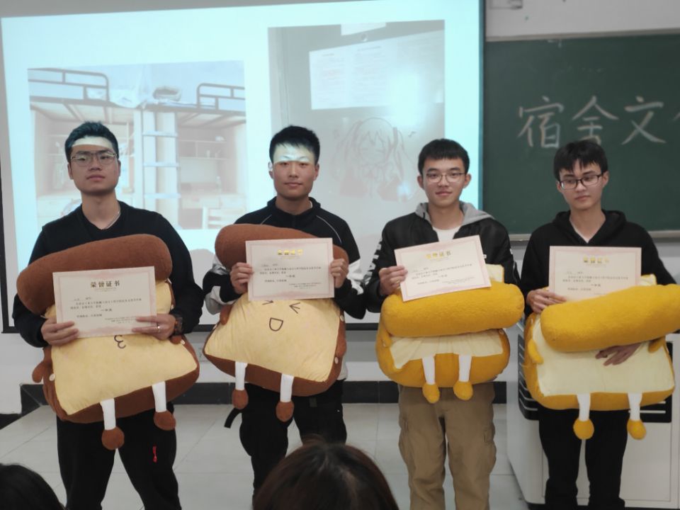 在系列活动之宿舍文化节中,活动包含展示及故事分享、知识竞赛、评委打分颁奖和总结环节。其中,十四组宿舍依次上台展示各自宿舍的文化并带来了丰富多彩的故事与大家分享。经过一二环节的打分,来自焊接1901班的201-3宿舍取得一等奖。二等奖和三等奖分别是焊接2001班的734宿舍和机械类2007班的717宿舍。