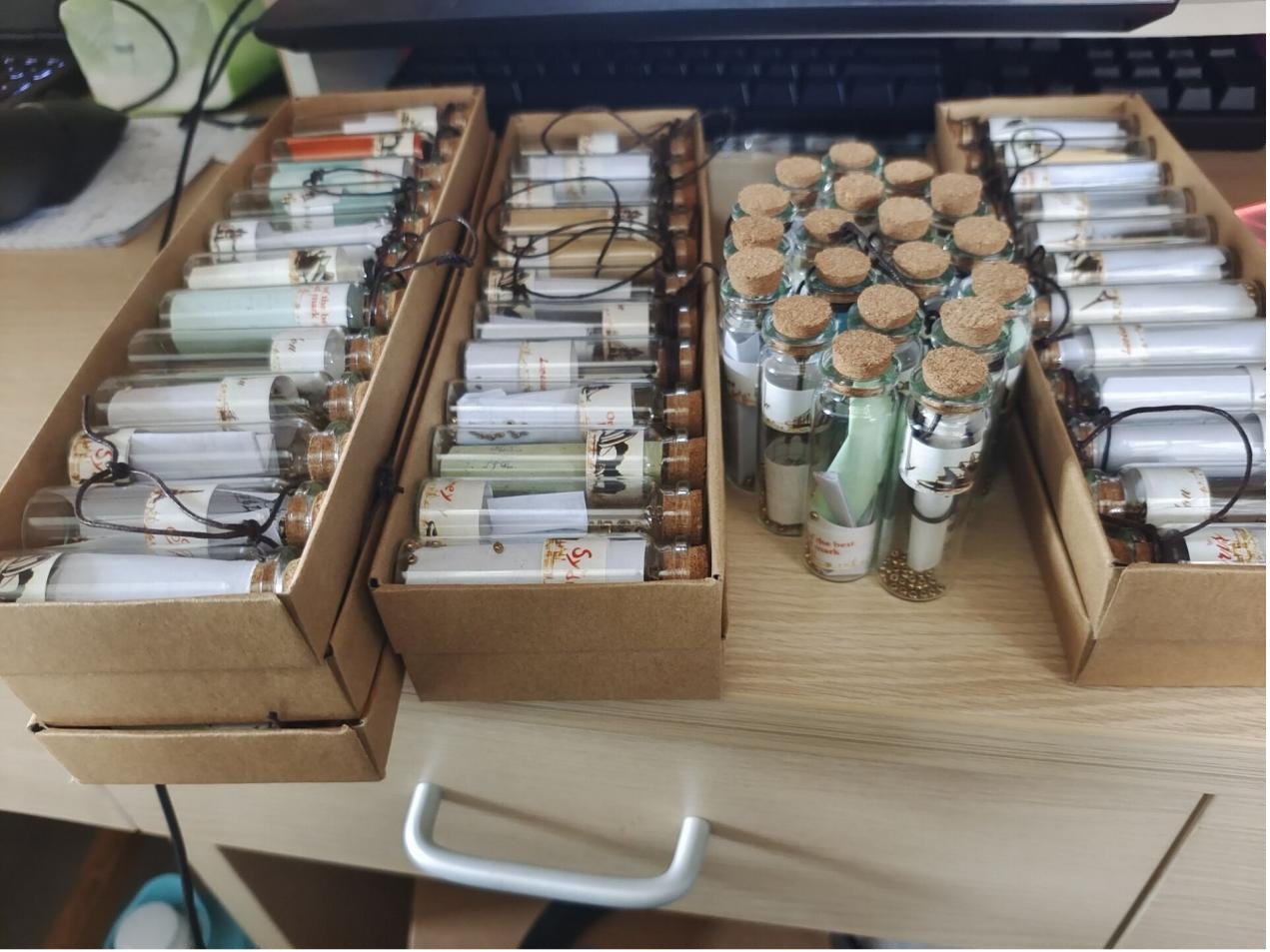 本次活动以班级为单位,由各班班长于活动负责人处领取漂流瓶并分发给参与活动的同学,同学们在纸条上书写自己的烦恼或是期望,并附上联系方式放置于漂流瓶中,再由班长交由负责人,将漂流瓶打乱,重新分发,拿到瓶子的同学联系写下困惑的同学,为其“漂流”回信、答疑解惑、传递温暖。