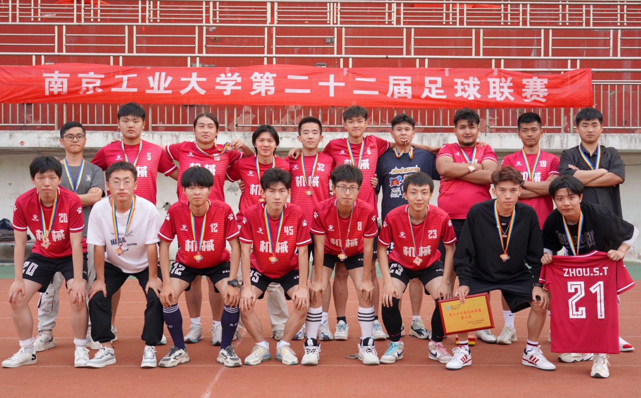 本届校联赛公司队员也是收获颇丰,徐鹏入选了最佳阵容,朱逸飞荣获最佳射手与最佳球员,我们以不完美中的完美送别了即将毕业的徐鹏、周圣涛和朱江。在2018年收获第四名后,太阳成城集团tyc234cc古天乐已经连续三年未能实现小组出线,但今年强势的表现宣告了铁血机械的回归,奋勇拼搏,只为追上曾经的自己!来届校联赛我们将继续不遗余力,展现太阳成城集团tyc234cc古天乐顽强拼搏的品质!