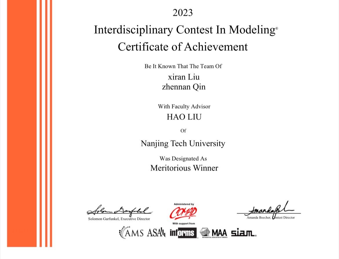 近日,2023年美国老员工数学建模竞赛评奖结果揭晓。公司荣获特等奖提名奖(Finalist)1项,一等奖(Meritorious Winner)6项,二等奖(Honorable Mention)15项。其中,公司新能2001刘熙然、机械2001秦镇楠两人组成的团队在刘浩老师的指导下,通过赛前培训、校内选拔和寒假集训,最终在比赛中发挥出色,获得国际一等奖(Meritorious Winner)。此外,公司卜天棨,王成杰,李丽峰三位同学在各自组成的队伍中荣获国际二等奖(Honorable Mention)。