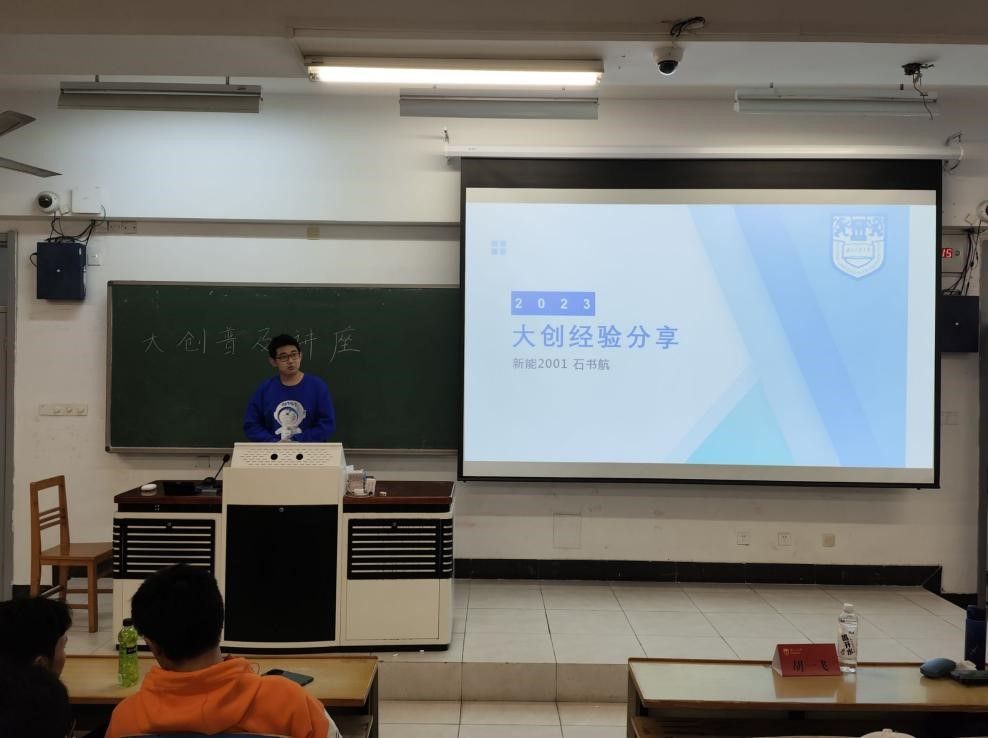 本次讲座邀请到了大创指导老师胡一飞,以及参加大创经验丰富的石书航同学为本次讲座分享经验。胡一飞老师首先针对大创项目的类型、选题、项目组建、结题要求等方面展开了细致深入的讲解。石书航同学则是分享了自己的大创经历,包括参加大创的收获和项目各阶段需要注意的事项。在随后交流互动环节,胡一飞老师与在场同学进行了深入细致的交流。活动最后,主持人对即将举行的大创讲座系列活动以及竞赛进行了预告。