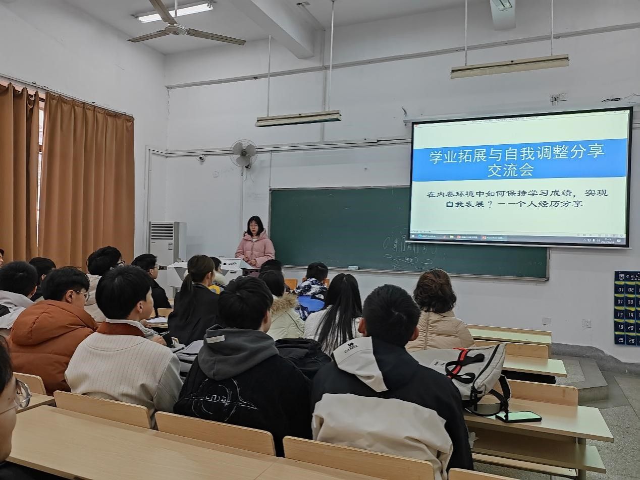 近日,太阳成城集团tyc234cc古天乐在笃学楼103举办2021级期末学风建设交流会,2021届毕业生李英学姐、高凌宇学长、辅导员储晓宇老师及2021级各班同学代表参加了交流会。