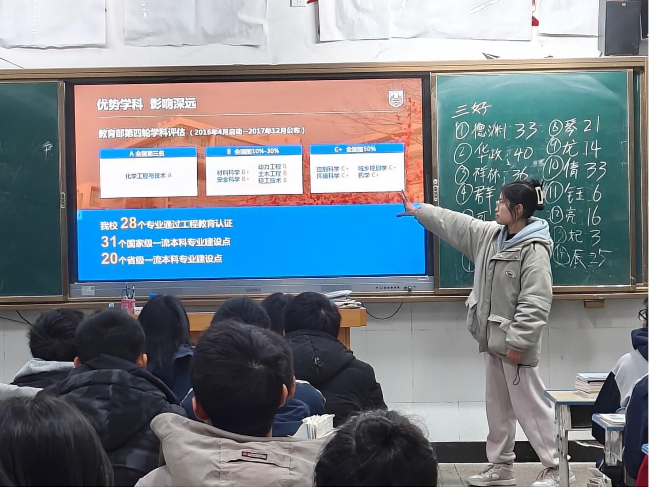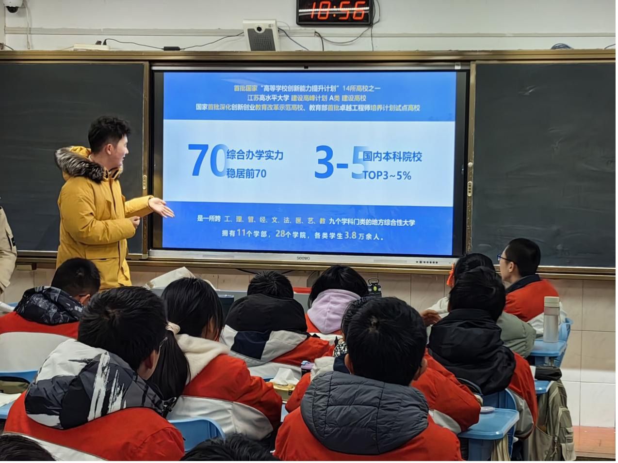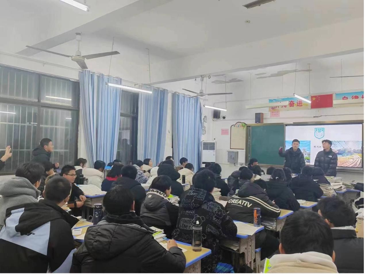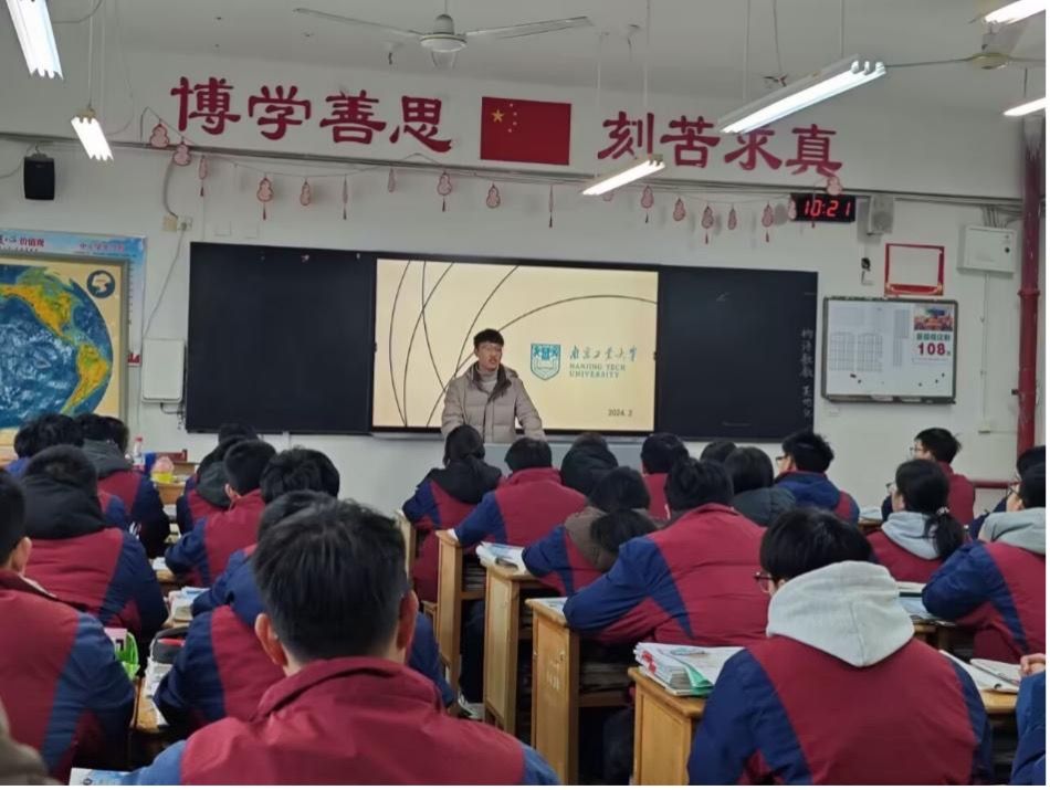 2024年1月21日,我们回到了母校江苏省溧水高级中学,队伍先后去到了三个理科班,向学弟学妹们介绍了南工大的教学情况、科研水平、招生政策等等。学弟学妹们都很热情,也向我们提出了一些问题,我们都一一做出了回答。
