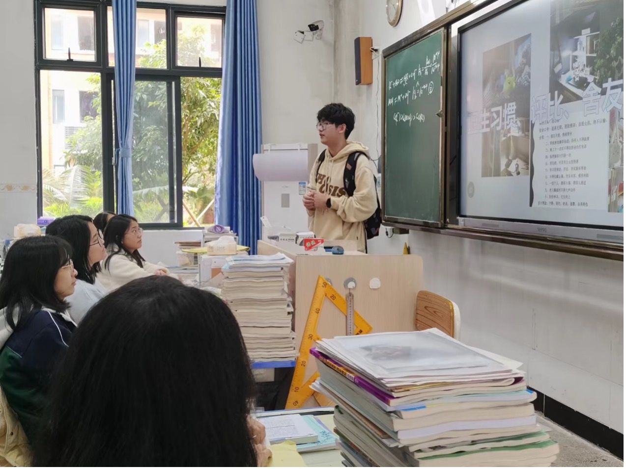 1月26日,我带着提前准备好的宣讲ppt和物资回到了母校,想到学弟学妹们临近一模,在宣讲之前,我并没有直入主题,而是首先通过我高三的学习方法和经验帮助同学们了解如何缓解压力、如何让提高学习效率。