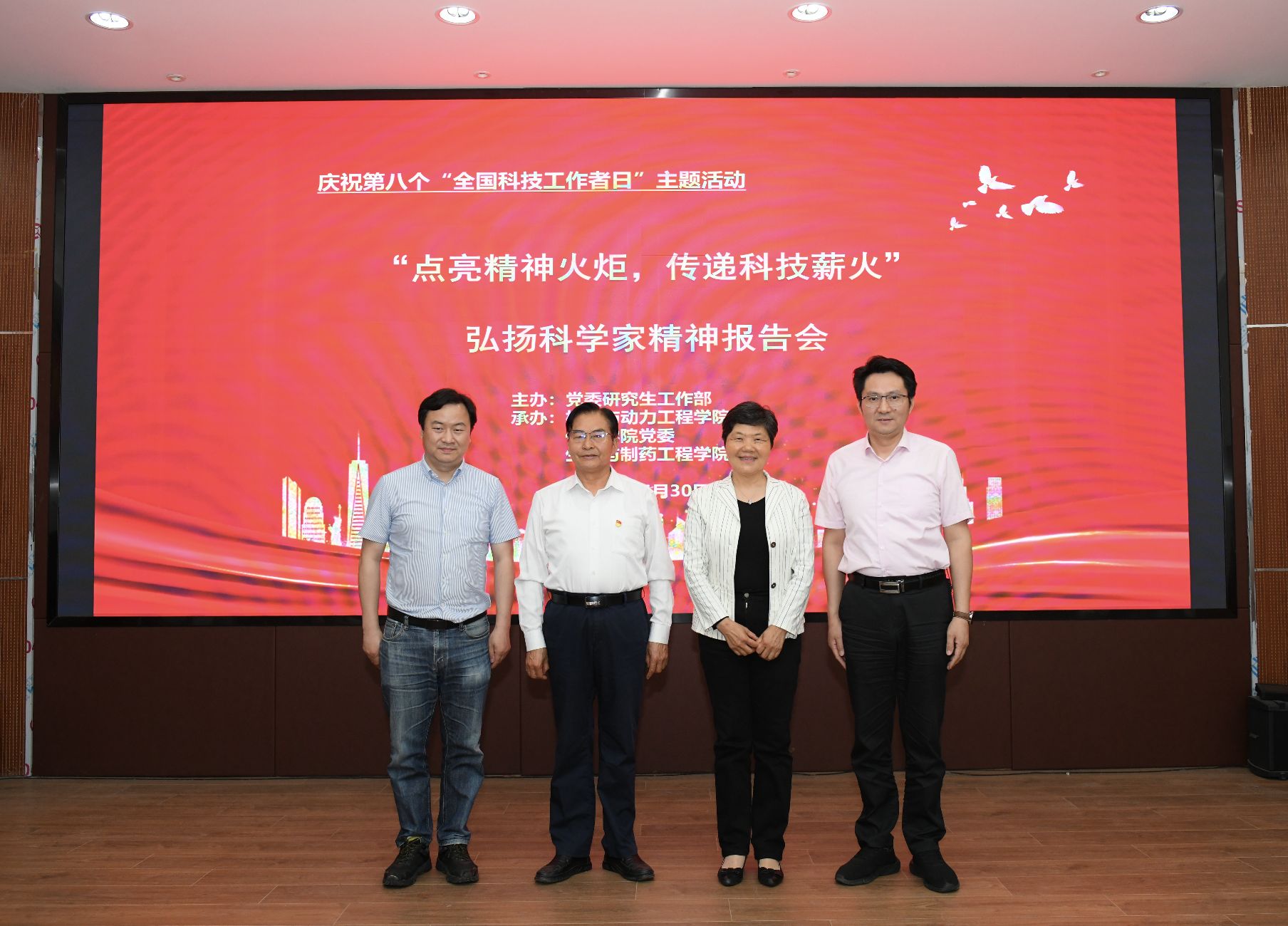 为庆祝第八个“全国科技工作者日”,5月30日下午,由党委研工部主办、公司党委承办的“点亮精神火炬,传递科技薪火”弘扬科学家精神报告会在崇德楼四楼报告厅举行。化工公司冯新教授,生工公司原党委书记缪昌美,公司党委书记蒋远喜,党委研工部副部长丁贤及青年教师、研究生代表参加报告会。公司党委副书记付昌义主持会议。