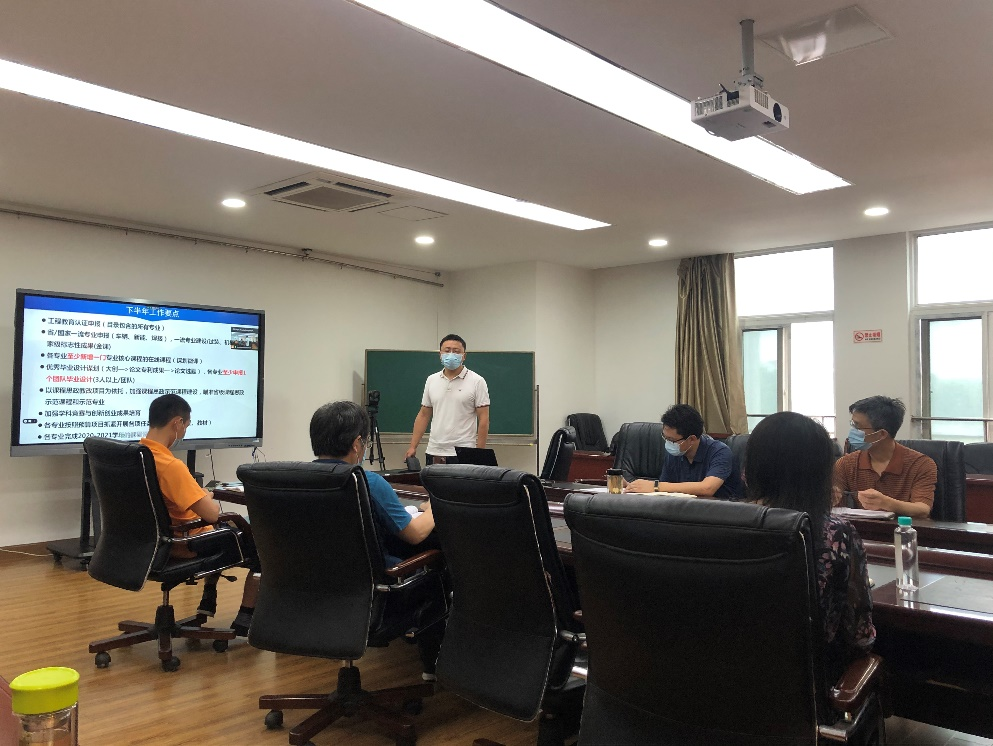 蒋远喜书记要求,各单位要深入学习贯彻校院两级年度党政工作要点,聚焦年度本科教学和人才培养的目标和任务,要“统一思想”、“明确目标”、“狠抓落实”。他强调教学工作是广大教师的本职工作,人才培养是良心工程、情怀工程,专业建设、团队建设要强化命运共同体理念;要结合党史学习教育,充分发挥党支部的战斗堡垒作用,发挥党员干部的先锋模范作用,把各项建设任务落实到岗、到人,力争下半年本科教学工作取得更大成绩。
