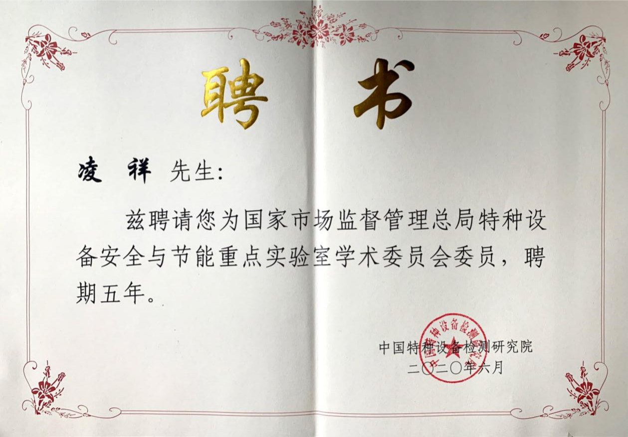 公司凌祥教授被聘为国家市场监督管理总局特种设备安全与节能重点实验室学术委员会委员
