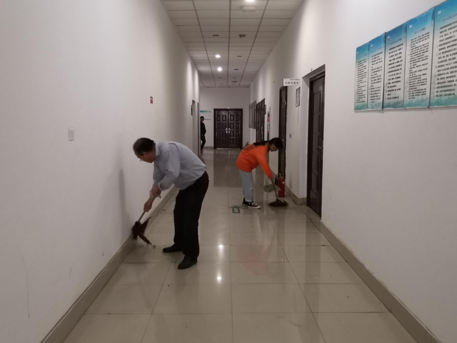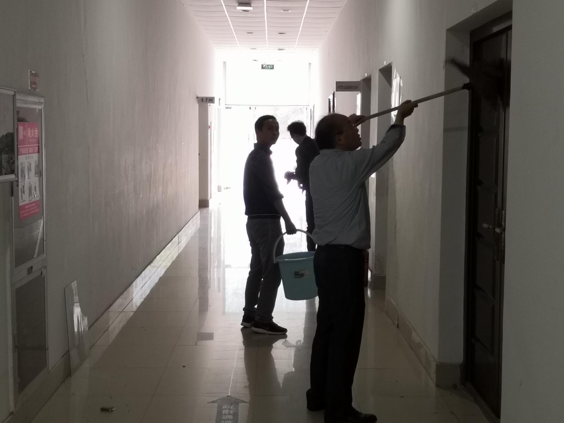 10月25日下午,在公司党委的统一部署下,各教工党支部按照卫生包干区的分工与要求,对公司学科楼范围内师生反映强烈、日常卫生保洁的盲区进行卫生清扫。在书记、经理的带领下,各支部党员带着拖把、抹布、扫帚等清洁物品对公司各个楼层的电梯门、过道、楼梯旮角、天花板蜘蛛网、楼周围地面等进行了彻底的清洁。受党员老师师范作用的感染,部分研究生同学也自觉地参与到义务劳动之中。大家干的热火朝天,短短的一个多小时就将责任区清理的干干净净。