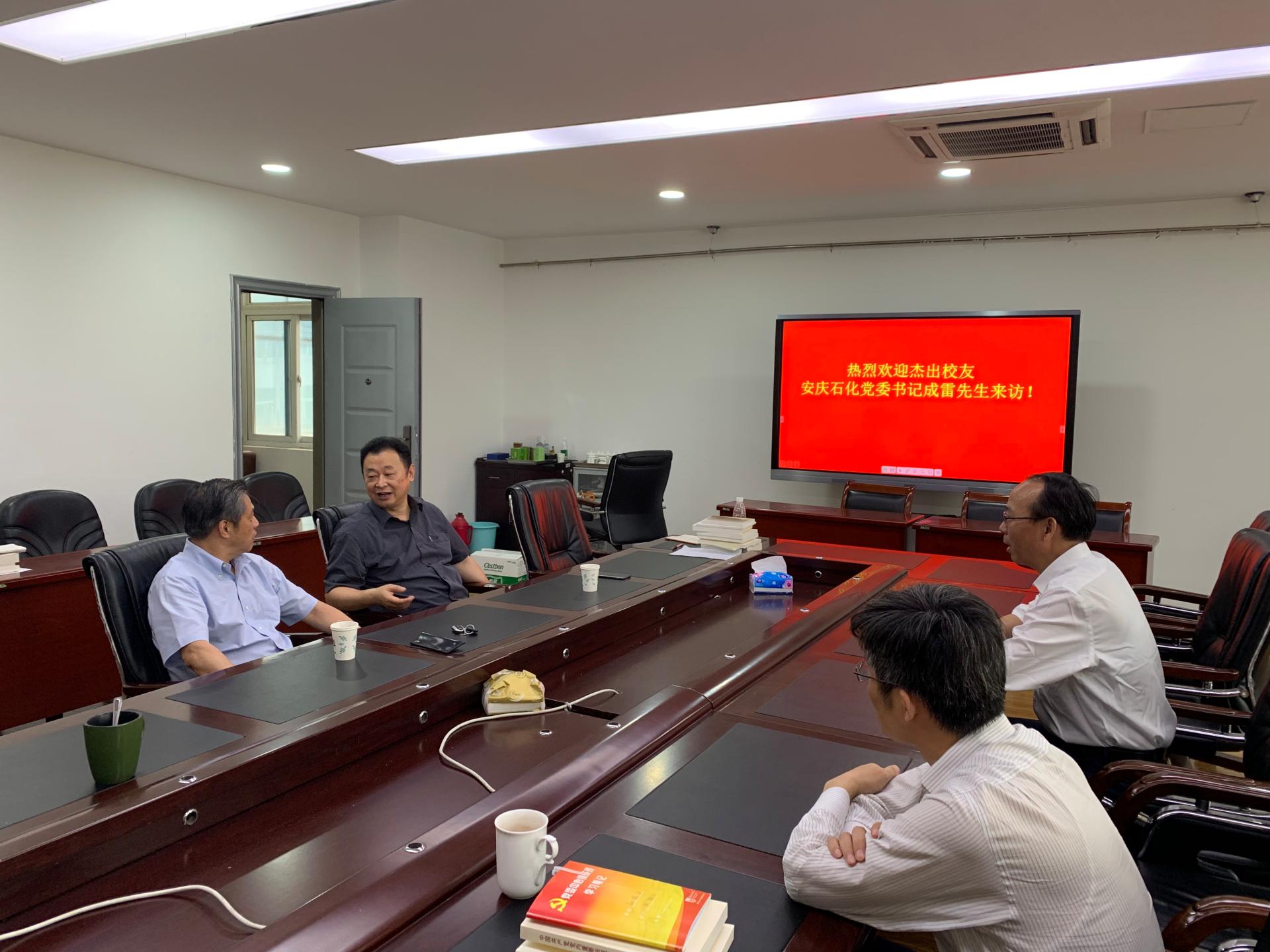 成雷书记介绍了安庆石化的基本情况,同时对双方合作表示浓厚的兴趣。他表示,一别母校数十年,一直很期望能为母校做点事情,希望能借着双方合作的契机再为母校发展和社会发展做出努力和贡献。