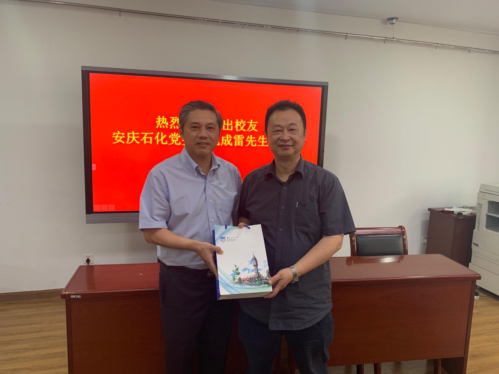 9月27日下午,安庆石化党委书记、杰出员工成雷先生来校交流,副董事长巩建鸣和公司党政领导接待了成雷员工。