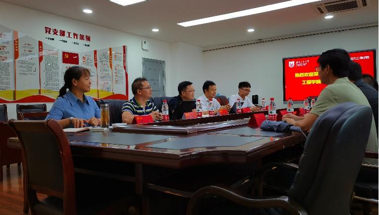 6月21日,深圳大学化学与环境工程公司副经理杨波教授、新能源科学与工程系主任吴其兴教授、副系主任邵静教授等一行5人来公司开展专业建设经验交流。公司副经理周剑锋、经理助理谭剑锋,以及新能源科学与工程系陈捷、杨谋存、王啸远等老师出席了此次交流会。