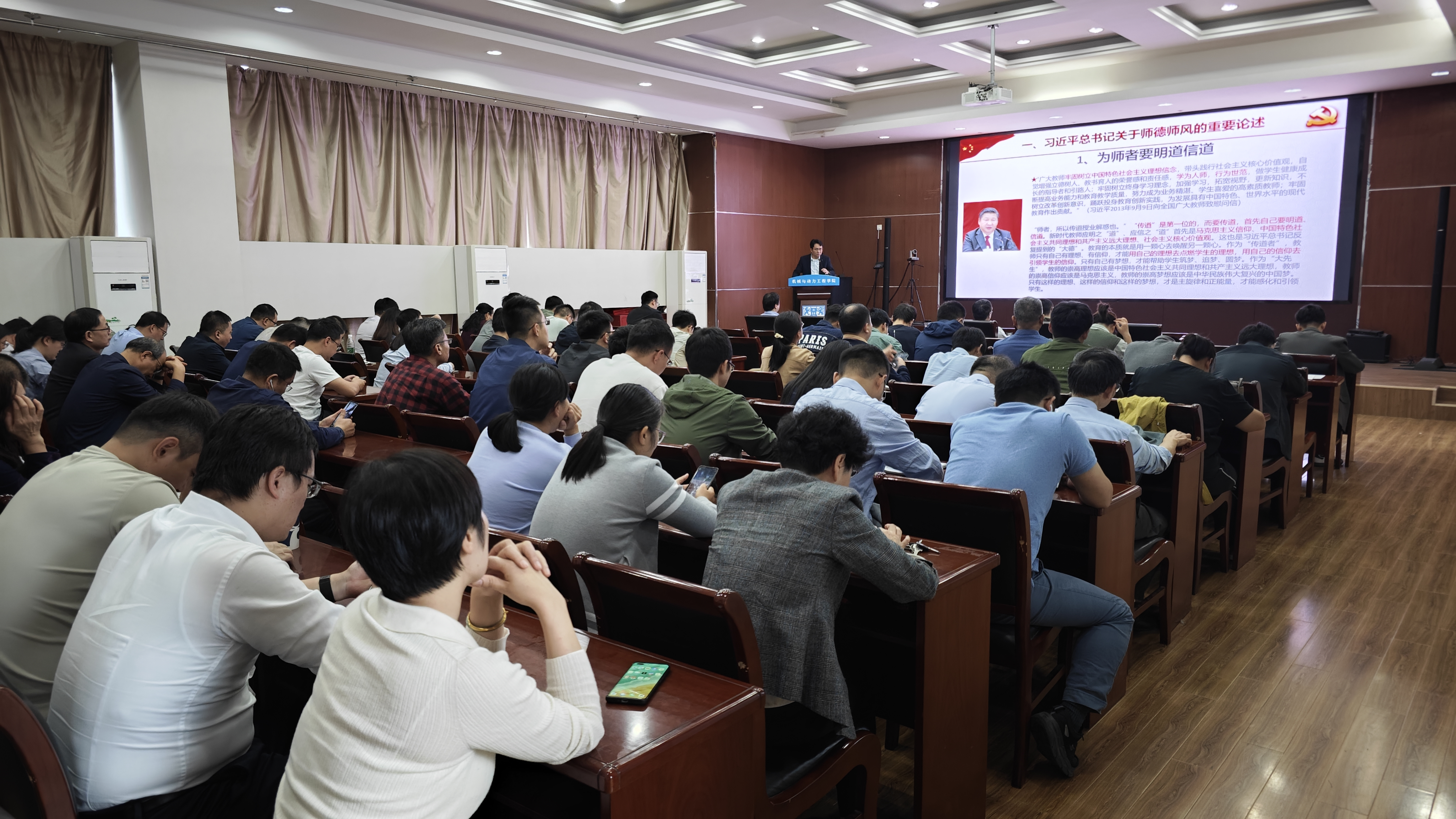大会共分为三个部分。第一部分是师德师风集中学习教育大会。会上全体教职工集中观看了师德师风警示教育片以及《大教育家》之《蔡元培》,党委书记蒋远喜带领大家学习了习近平总书记关于师德师风的重要论述、师德师风相关规章条例以及警示教育案例,要求全体教职工严格执行《新时代高校教师职业行为十项准则》和校纪委的“九个严禁”要求。第二部分是安全生产专题会议。会上,副经理王华解读了实验室安全检查的要求和处罚措施,通报分析了公司存在的安全隐患问题。安全员赵珣老师给大家进行了实验室安全培训。第三部分是公司学期工作会议。经理赵建平对公司总体工作进行总结和布置,包括人才培养、人才招聘、科研、团队建设、人才引育、安全生产等方面取得的成绩、存在的问题以及下一步改进提升举措。副经理周剑锋、王华、彭浩、党委副书记付昌义分别就各自分管领域的工作进行了详细的总结和布置。最后,党委书记蒋远喜总结讲话,一是全面学习贯彻党的二十届三中全会精神,做创新改革的探索者;二是学习贯彻全国教育大会精神,做教育强国建设的实干家;三是学习弘扬教育家精神,做新时代的大国良师。